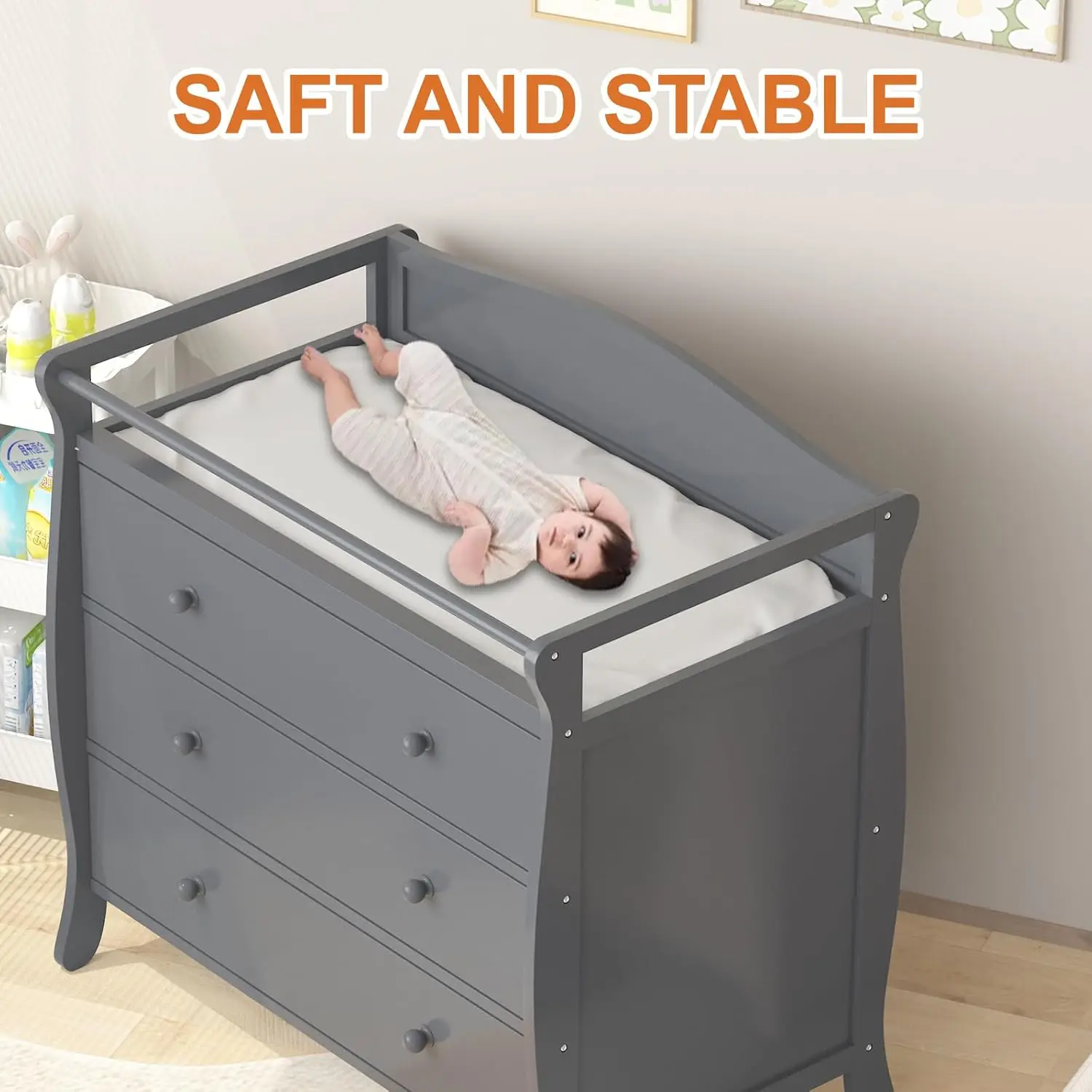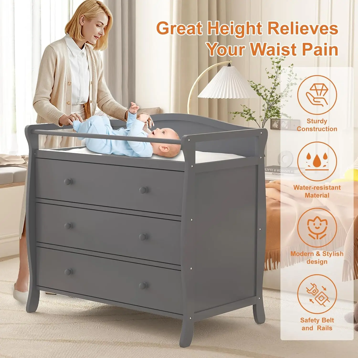 Baby Changing Table: Wooden 3 Drawer Baby Changing Station for Nursery