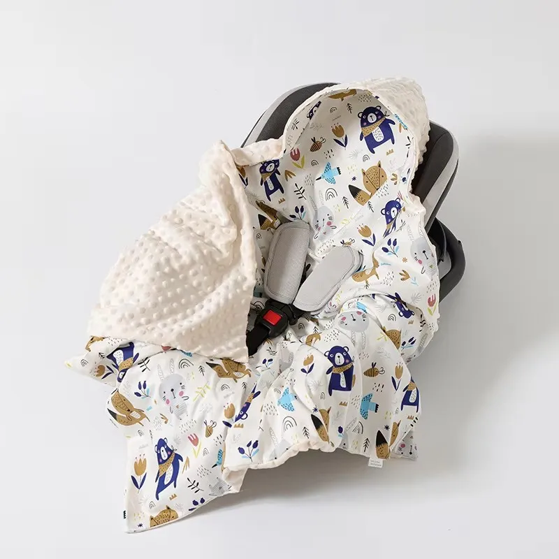 Baby Safety Seat Basket Blanket for Newborn Doudou Fleece Quilt Swaddle Wrap Windproof Hooded Swaddling Blankets Stroller Cover